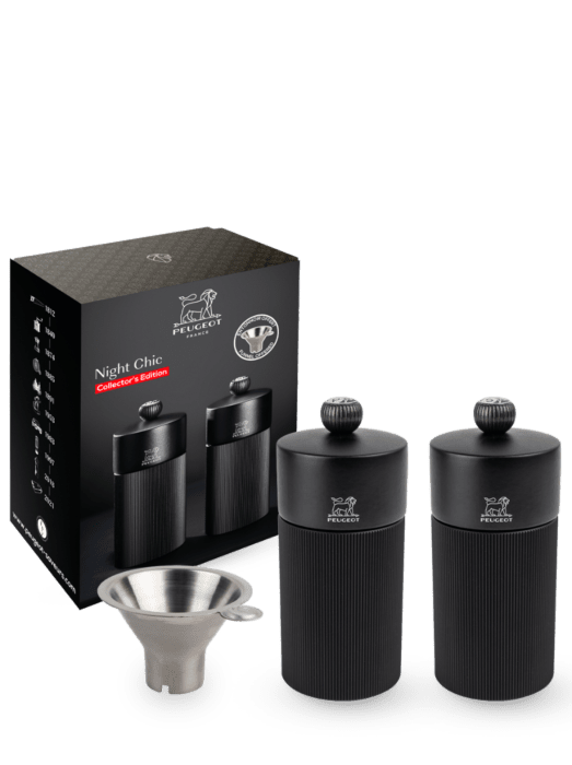 Night chic geschenkset Duo pfeffer- und salzmühle line, mattschwarz, 12 cm + edelstahltrichter - Peugeot Saveurs