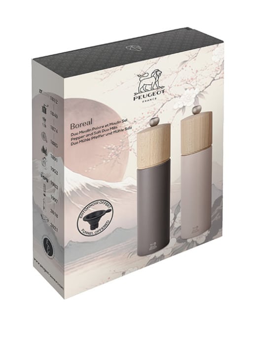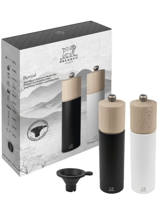 Duo boreal Geschenkset - duo aus boreal pfeffer- und salzmühle 21 cm und silikontrichter - Peugeot Saveurs