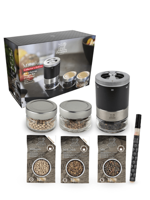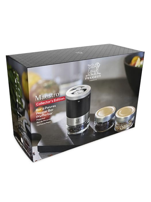 Maestro Pfeffermühle maestro u´select, mattschwarz, pfefferbar mit 3 verschiedenen pfeffersorten und 3 austauschbaren behältern - Peugeot Saveurs